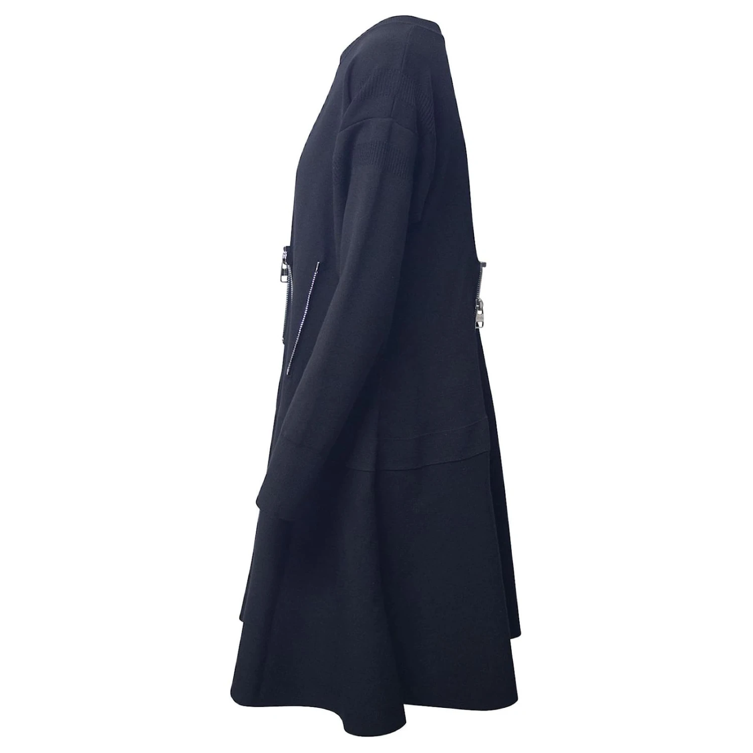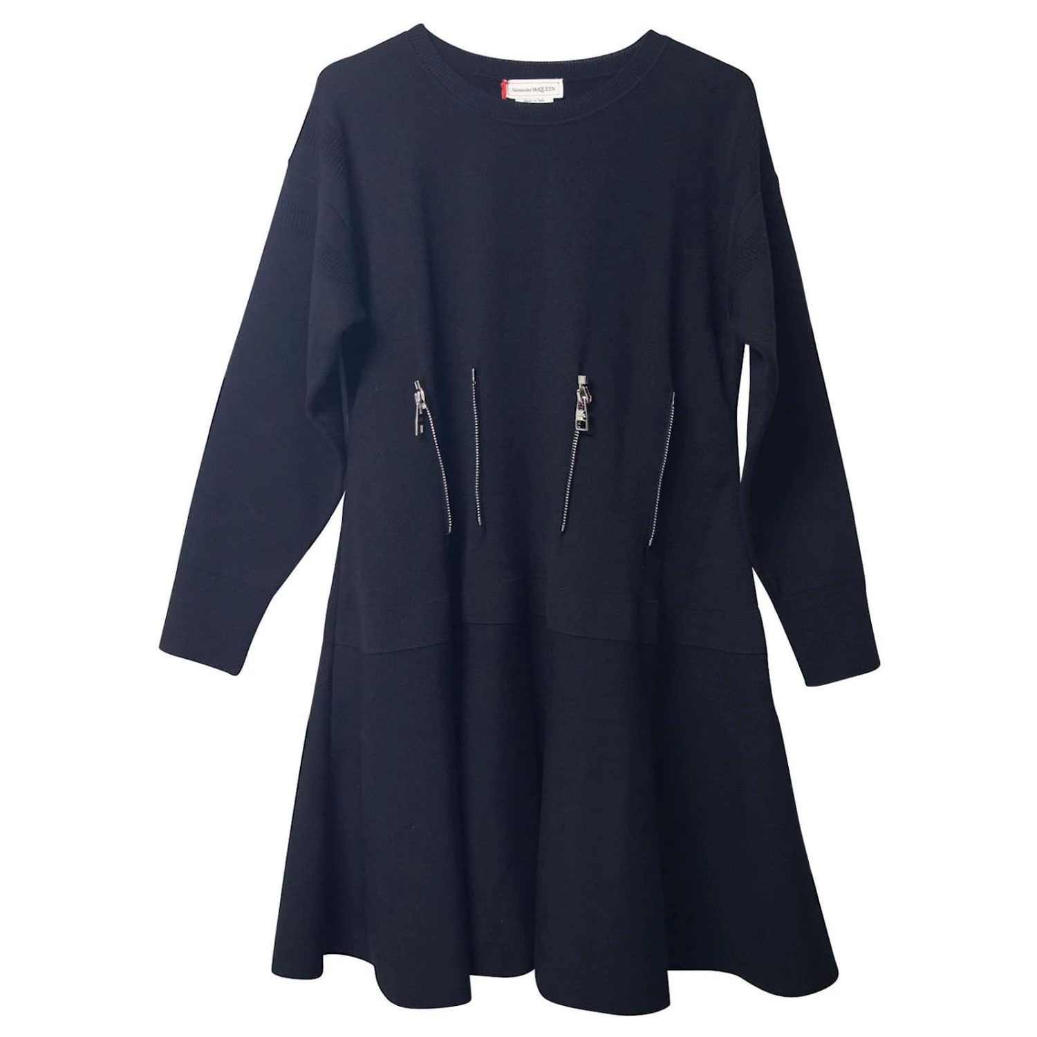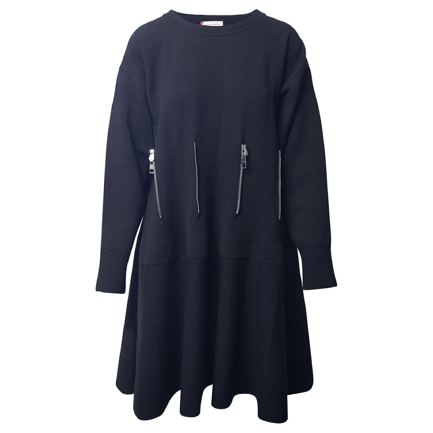 Eine aufgefrischte Version des klassischen kleinen Schwarzen. Entworfen in einer ausgestellten Silhouette, Dieses schwarze Kleid von Alexander McQueen hat lange Ärmel und silberfarbene Reißverschlussdetails.