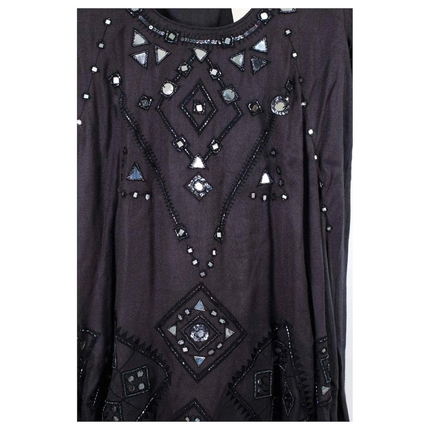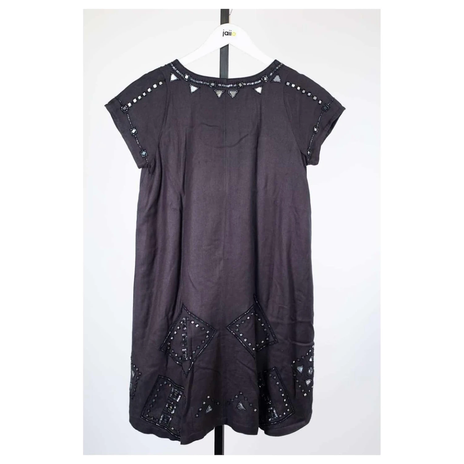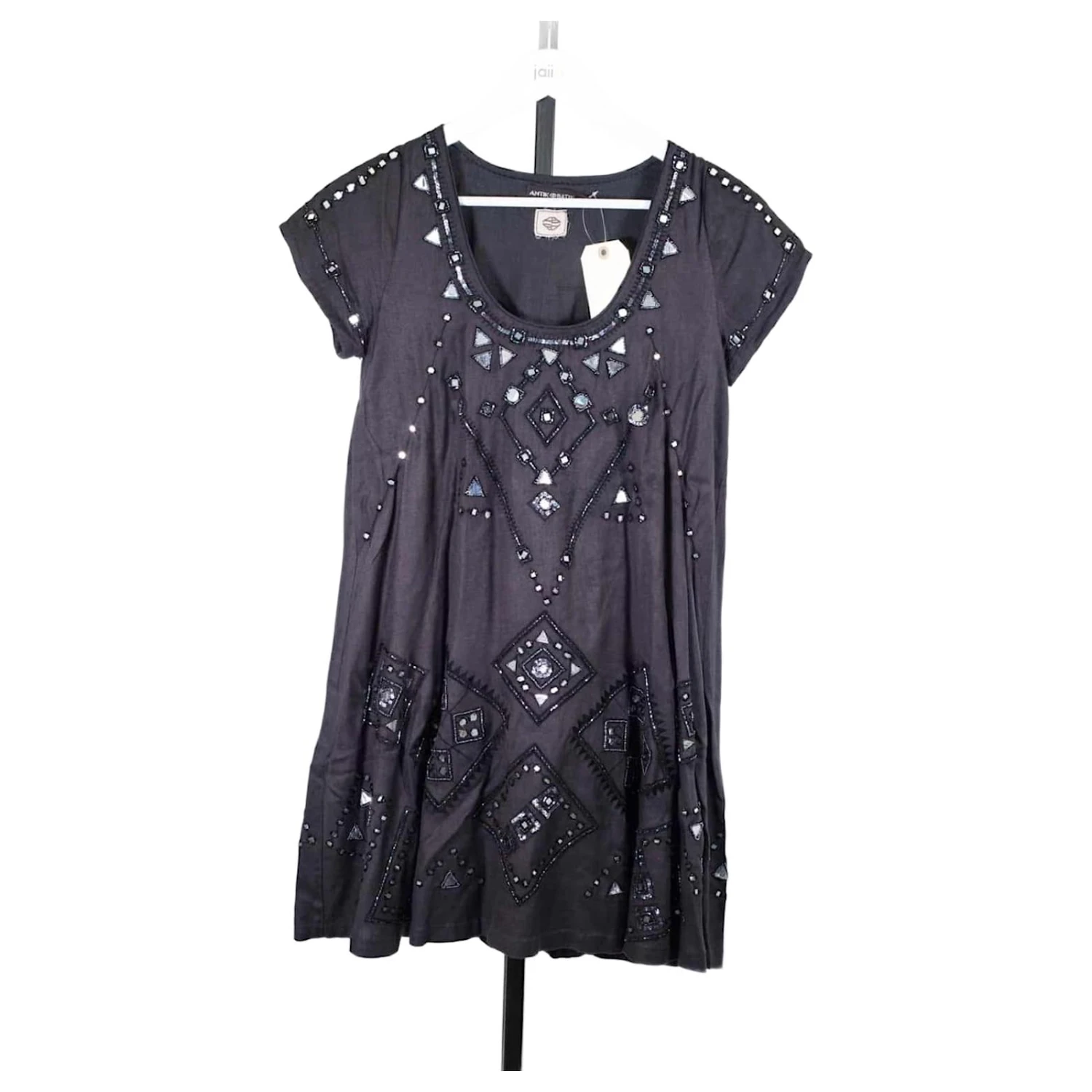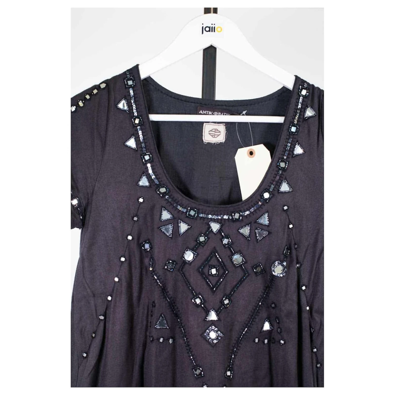 Perlenbesticktes Kurzarmkleid – Antik Batik – Größe 38 – Baumwolle – Grau – Sehr guter Zustand – Ref 208003