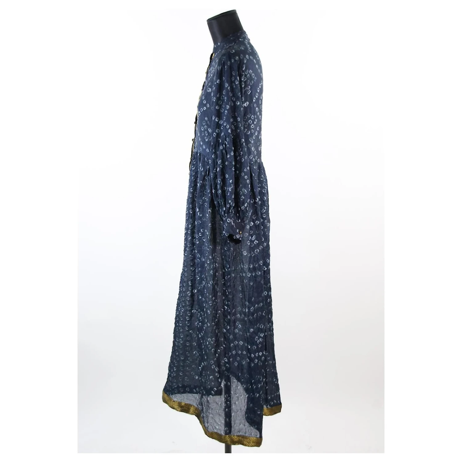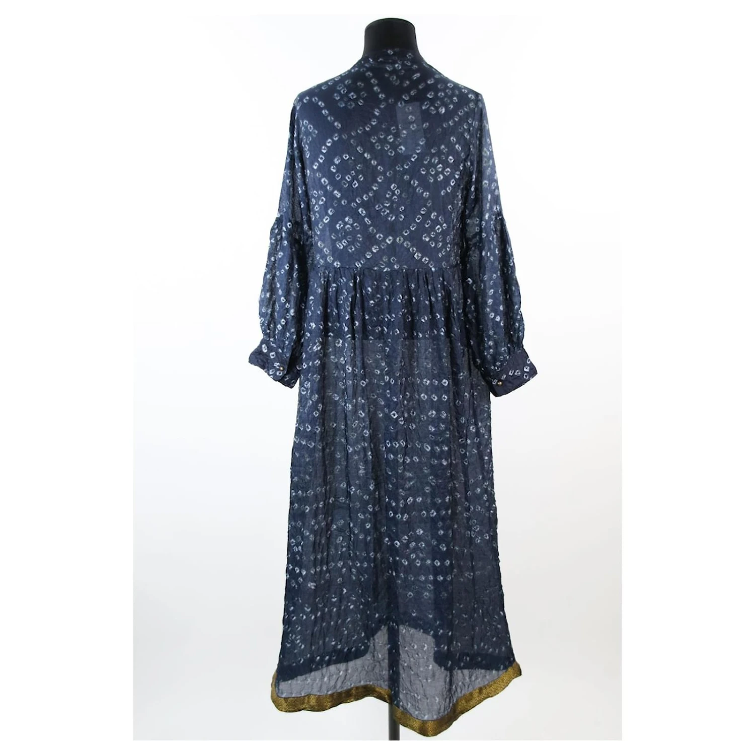 Langes Kleid – Lange Ärmel – Achseln 46cm – Länge 131cm-V.DE.Siege – Blau – Größe 36 – 70% Viscose 30% Seide – Sehr guter Zustand – Referenz 741078