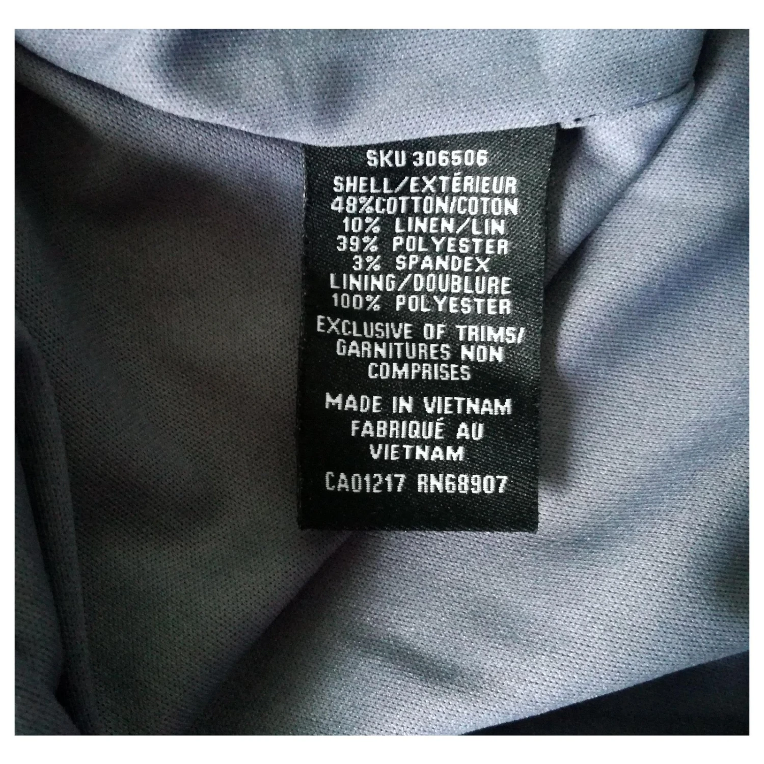 Material: 48% Baumwolle, 10% Leinen-, 39% Polyester, 3% Elasthan.