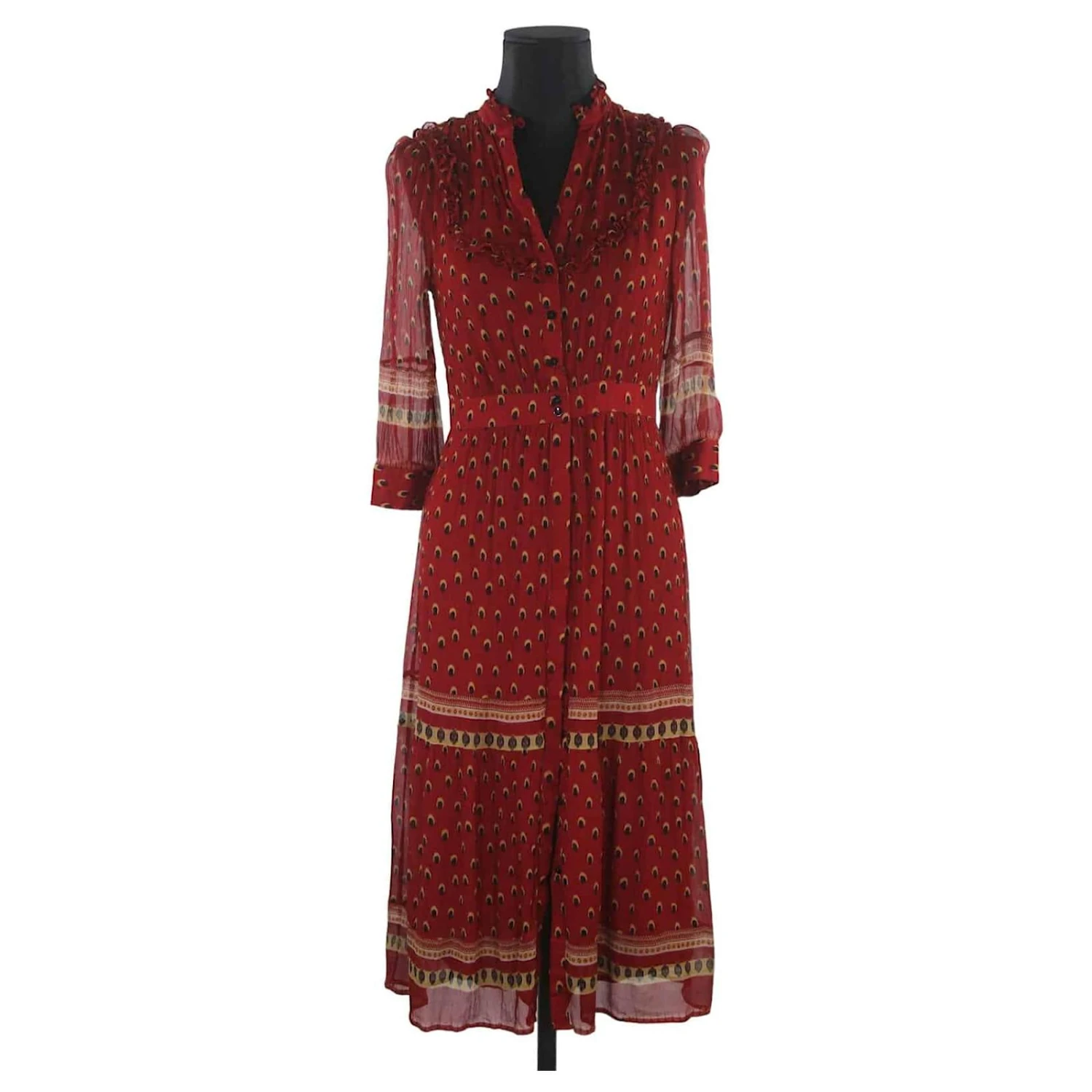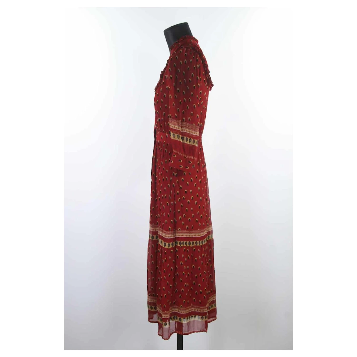 Langes bedrucktes Kleid – Modell Barie – Ba&Sh – Länge: 115cm – Rot – Größe S – 100% Viskose – Sehr guter Zustand – Referenz 867007