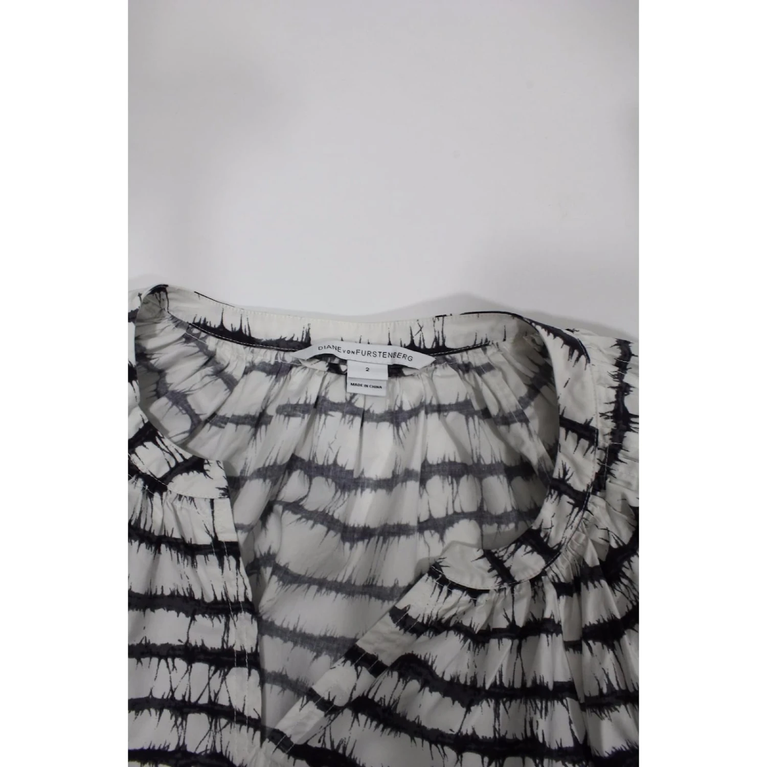 Kleid mit kurzen Ärmeln von Diane von Furstenberg. Vorhandensein eines Gürtels.100% Baumwolle Maße: Länge: 86 cm Breite: 51 cm Ärmellänge: 39 cm