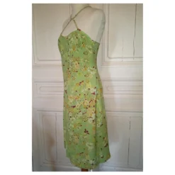 CHRISTIAN LACROIX KLEID KLEID CREPE PISTAZIO KRAWATTE ÜBERKREUZTER HALS ABEND T40/42 Hellgrün