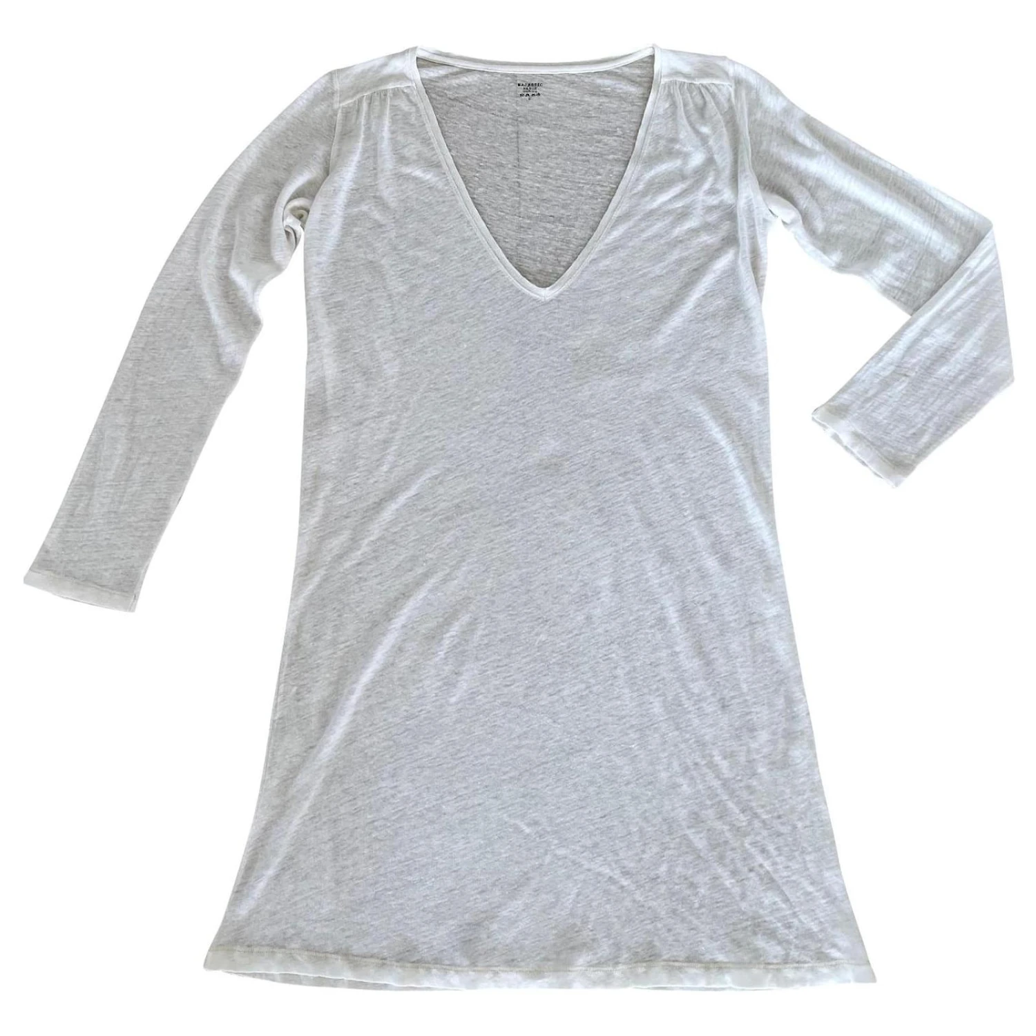 Majestic Gerades Tunika- Oder T-Shirt-Kleid 100% Ecru Leinen T.2 Creme