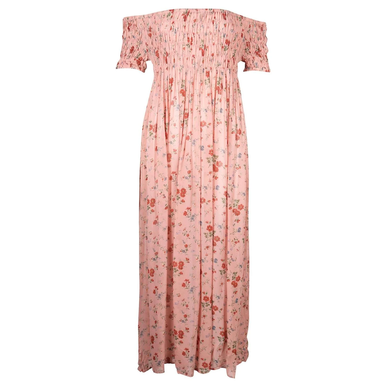 Philosophy Di Alberta Ferretti Rosafarbenes, schulterfreies Kleid mit Blumenmuster