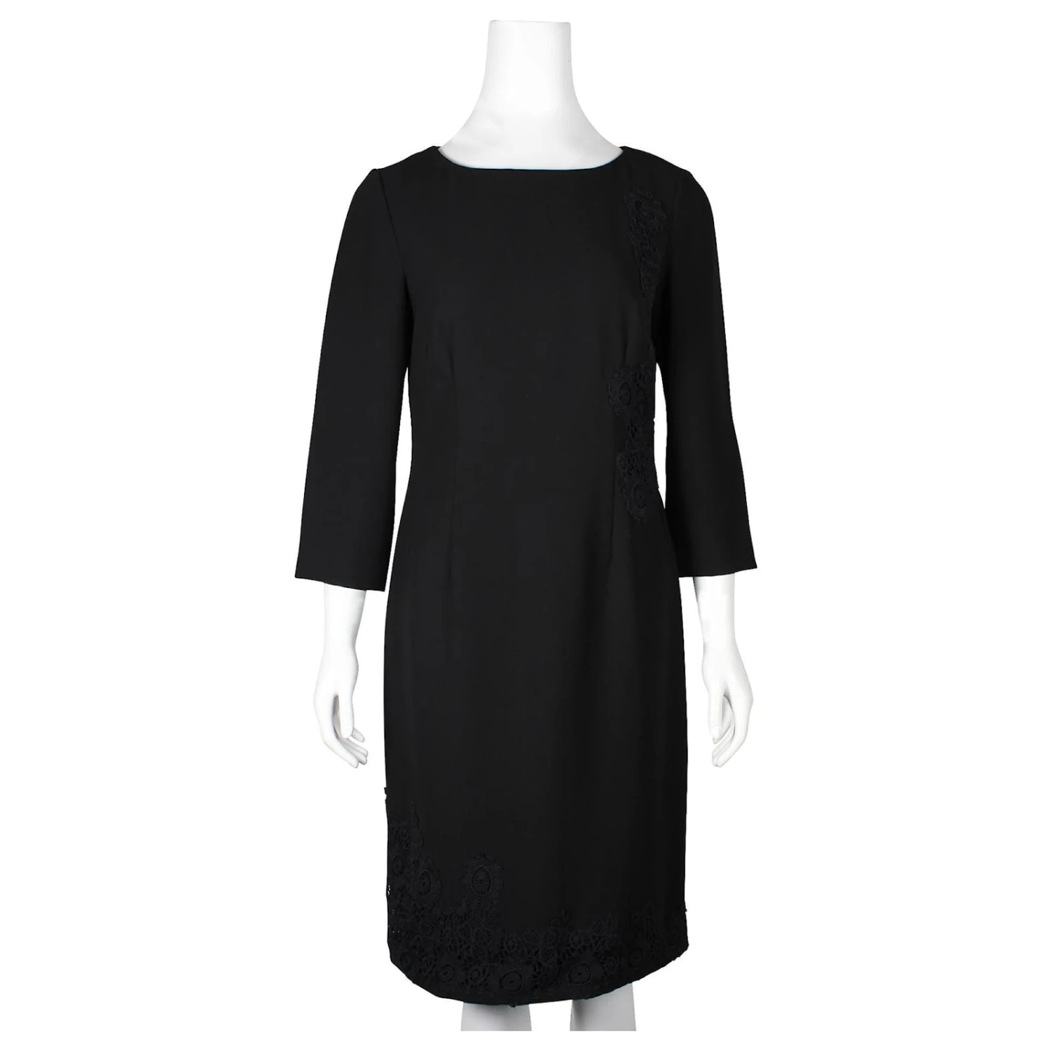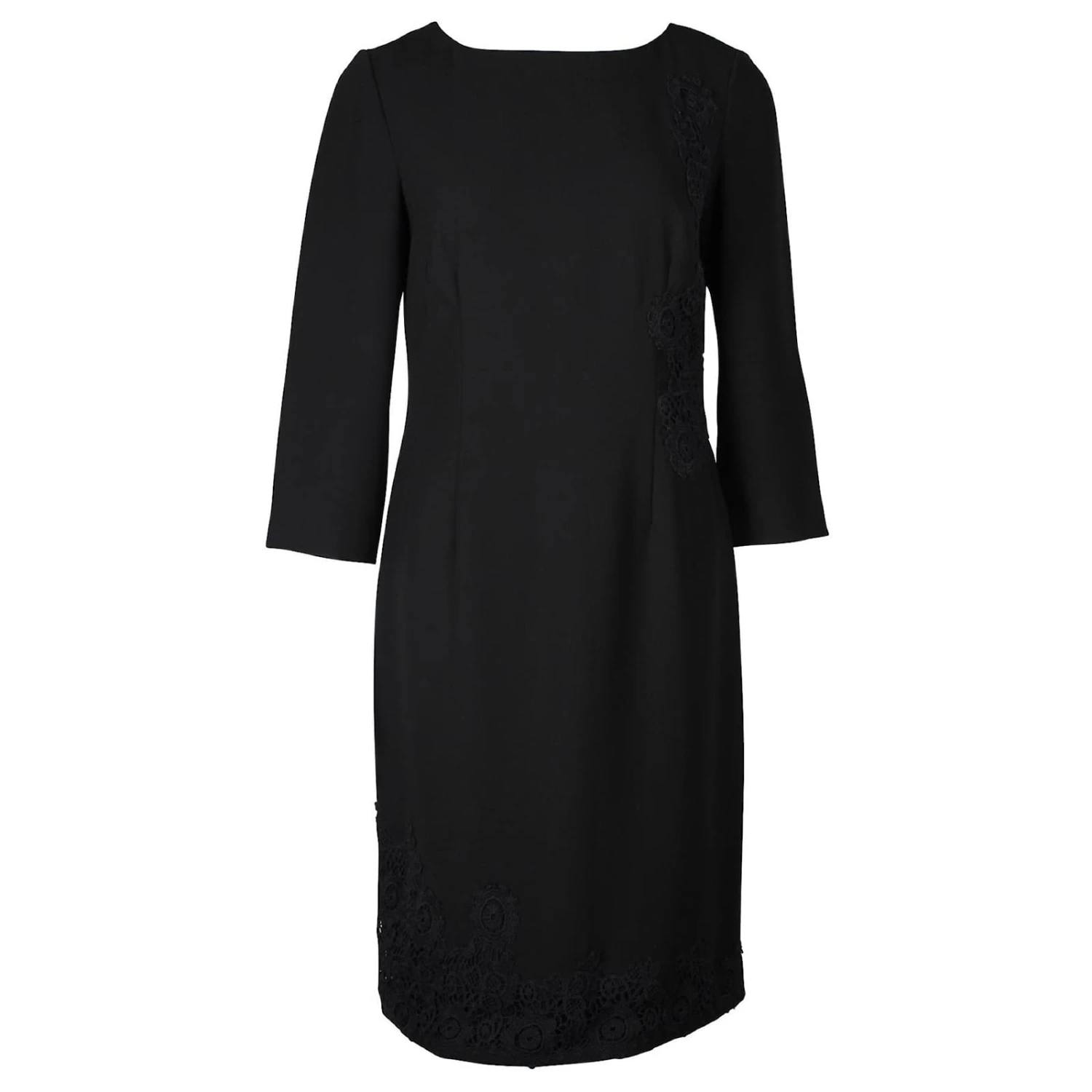 Midikleid mit 3/4 lange Ärmel und Rückenreißverschluss. Spitzendetail auf der linken Seite und am Saum. in sehr gutem zustand, ein Teil des Saums wurde nachgenäht, aber auf der Vorderseite nicht sichtbar. hergestellt in Italien.