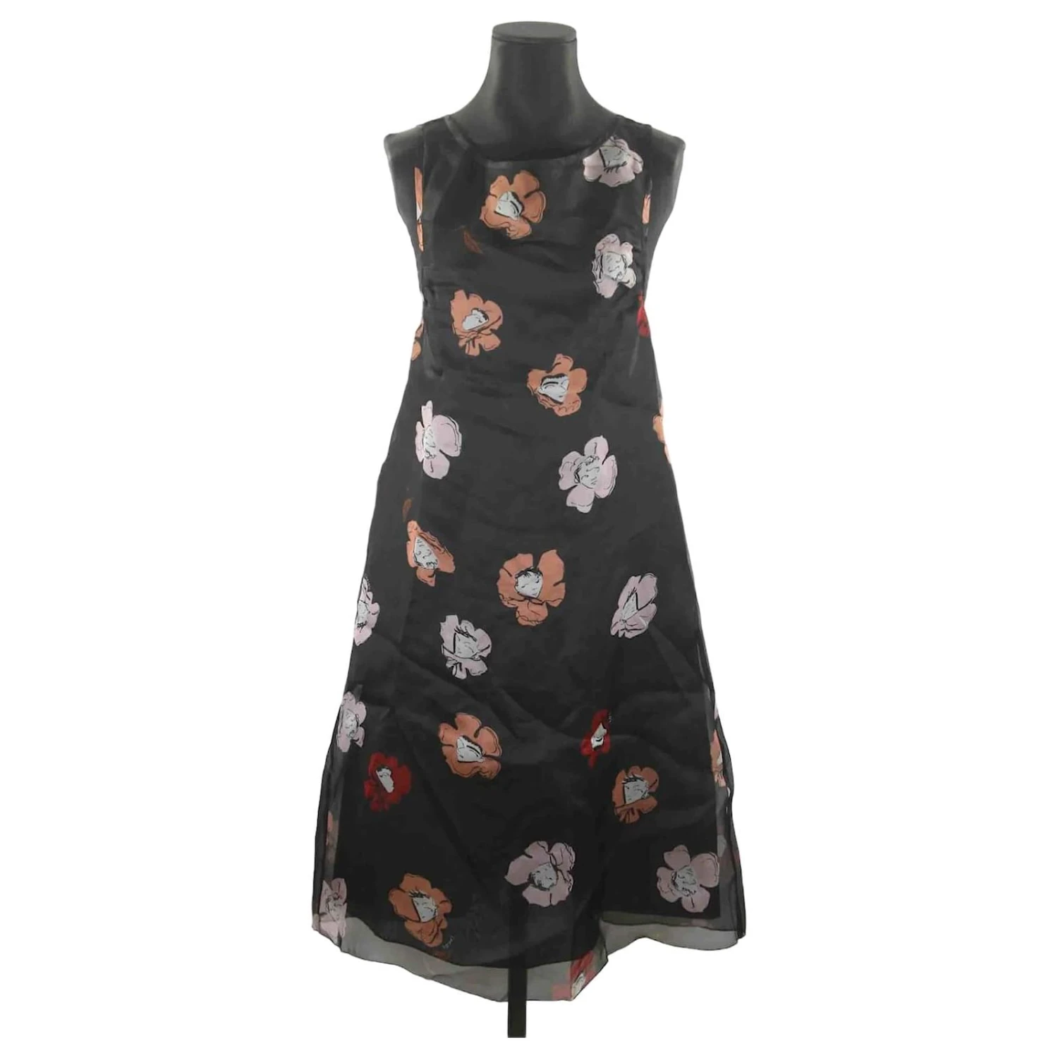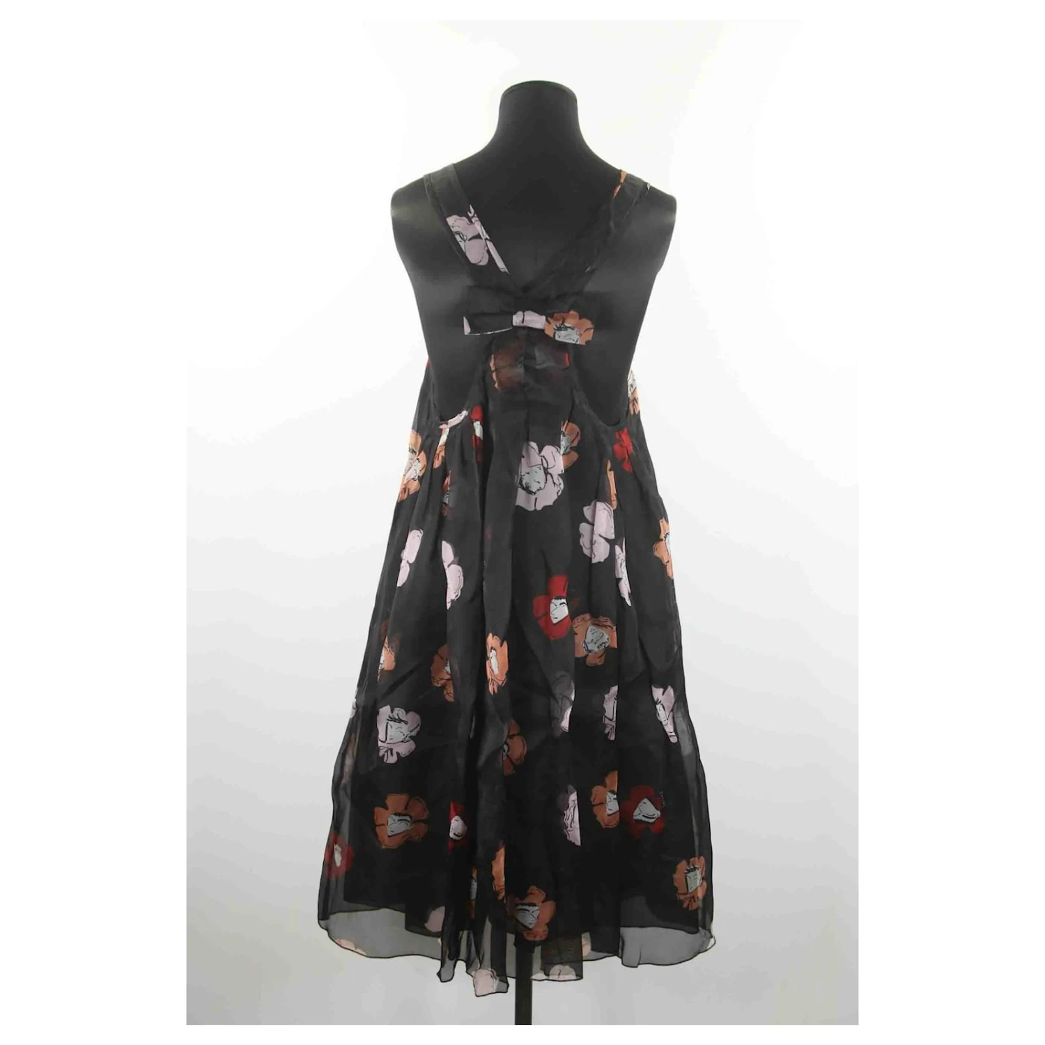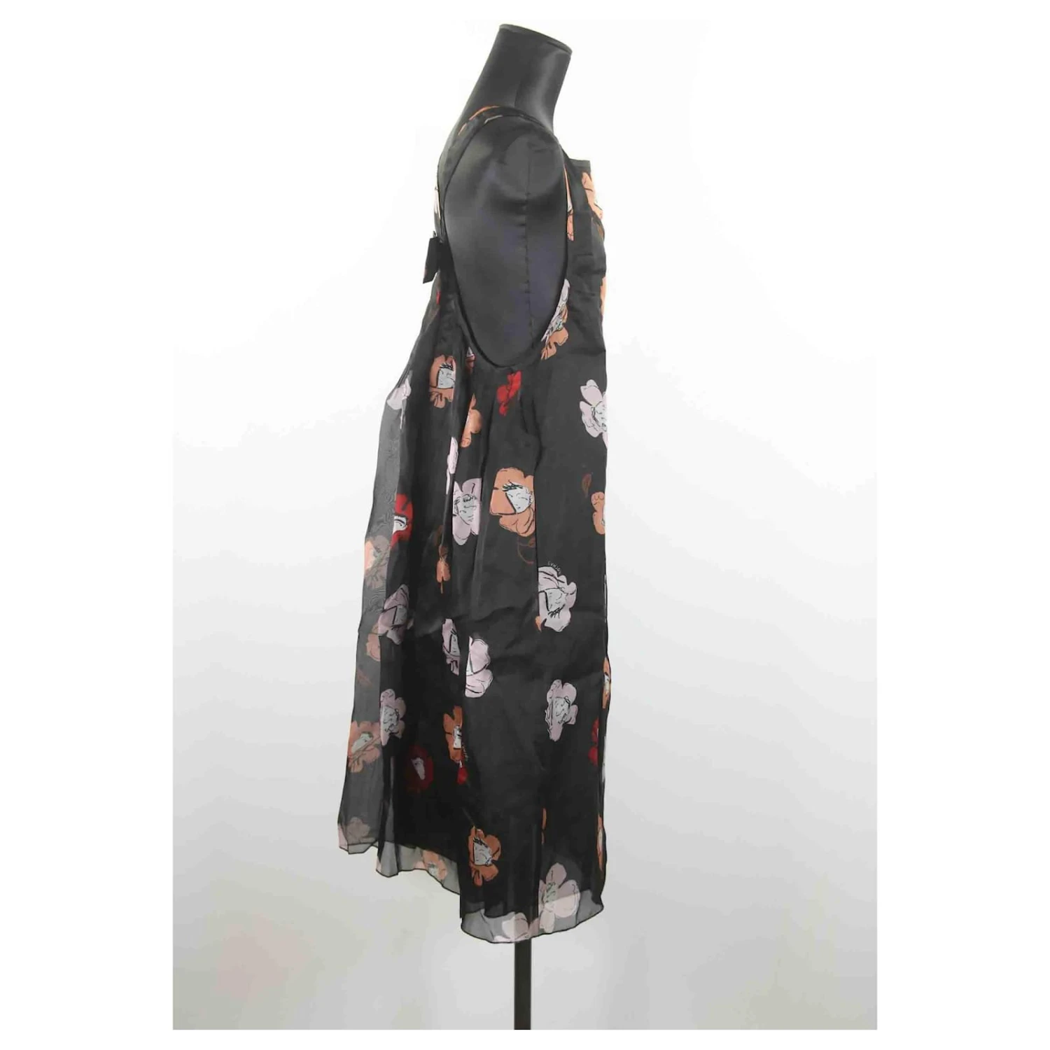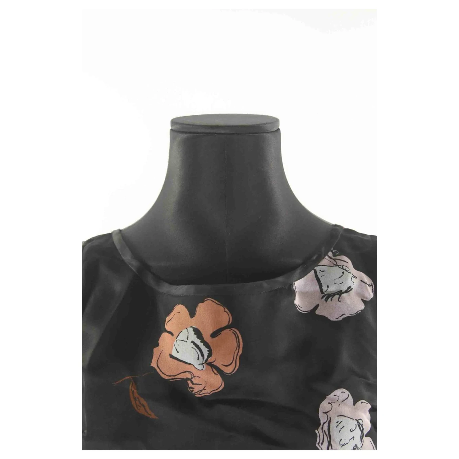 Kleid – Rochas – Länge : 107cm – Achselhöhlen : 43cm – Hinten gekreuzt – Blumenmuster – Taschen – Schwarz – Größe L – 100% Seide – Sehr guter Zustand – Referenz 373048
