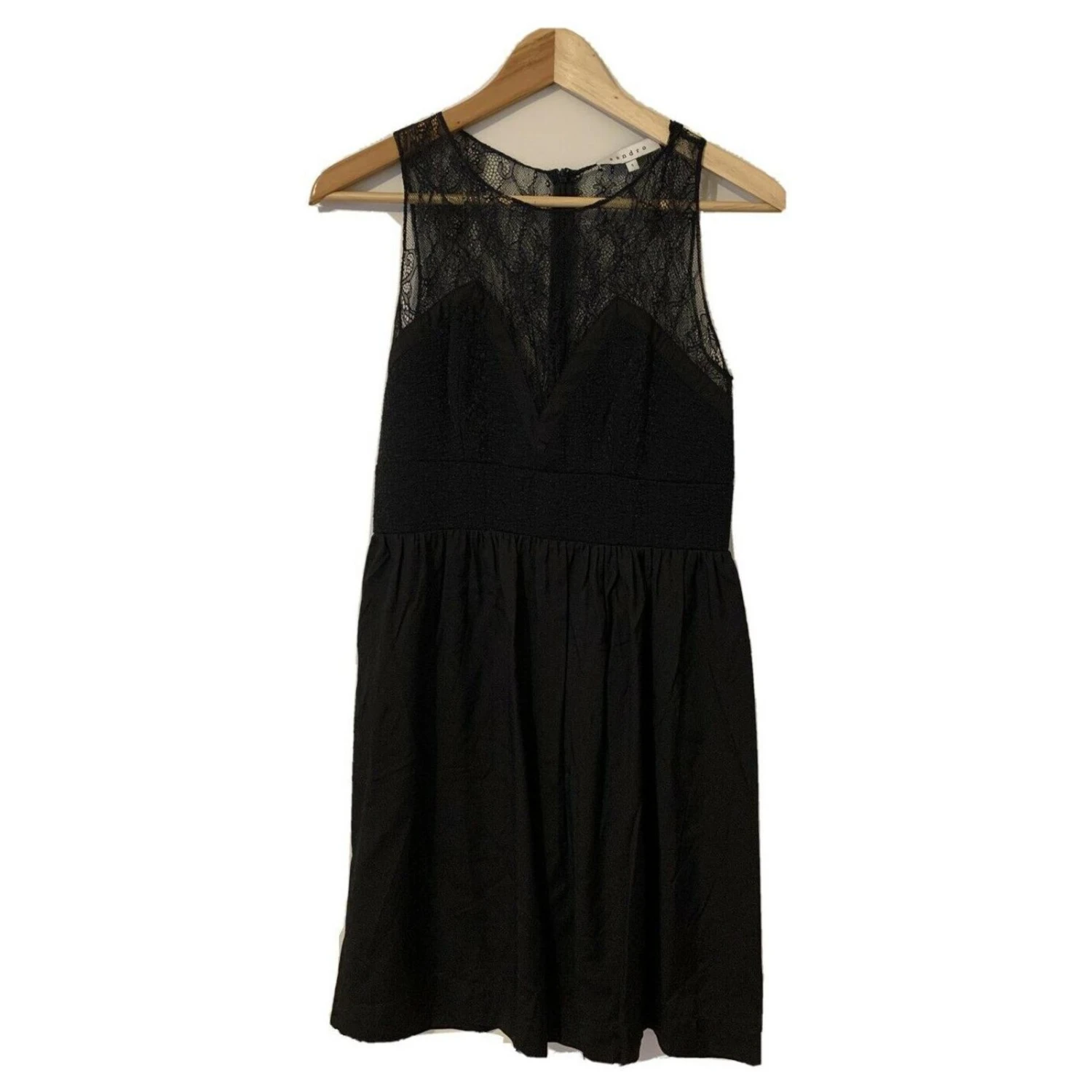Sandro Schwarzes Kleid Mit Spitze