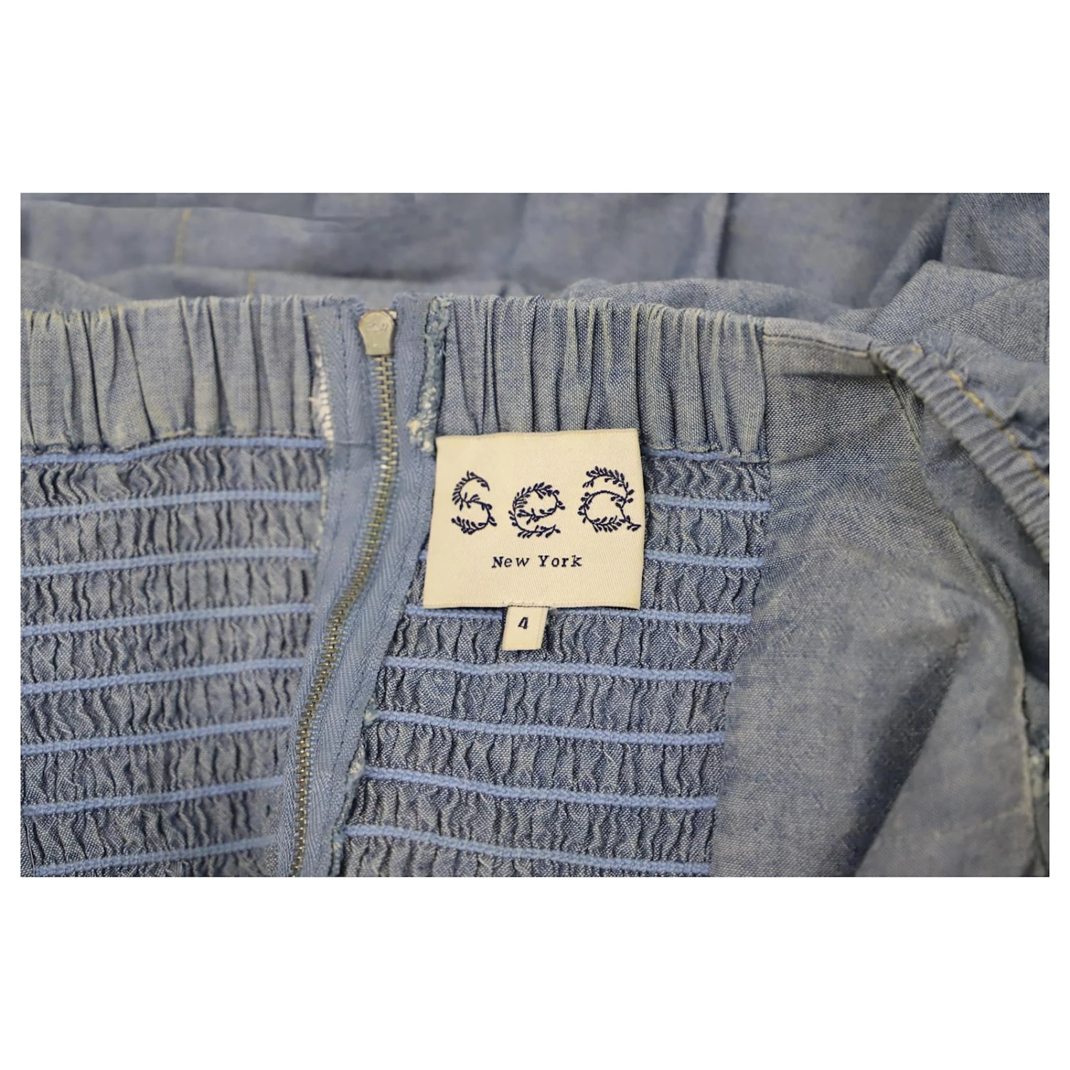 Sea New York Gerafftes Kleid mit Puffärmeln aus hellblauer Baumwolle
