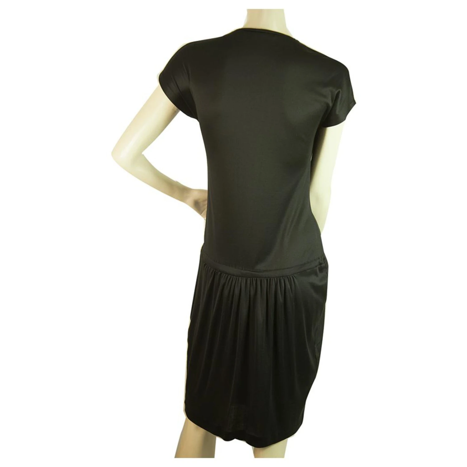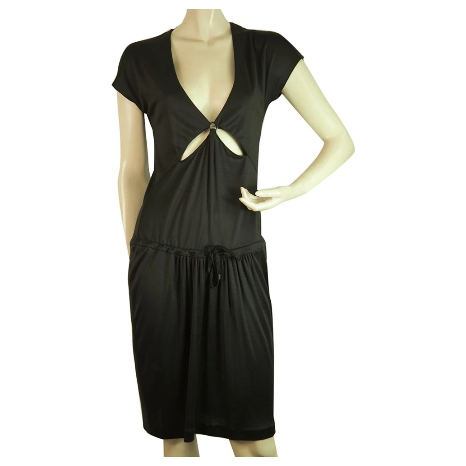 Jetzt ist hier ein Schwarz mit Tönen der Haltung !! Dieses modische Tomas Maier Jersey Seidenkleid hat einen tiefen V-Ausschnitt mit Schlitzen vorne , unter der Taille Kordelzug, Kappenärmel, knielang und schlüpft einfach weiter. Ein atemberaubendes Kleid , nicht zu vermissen !!