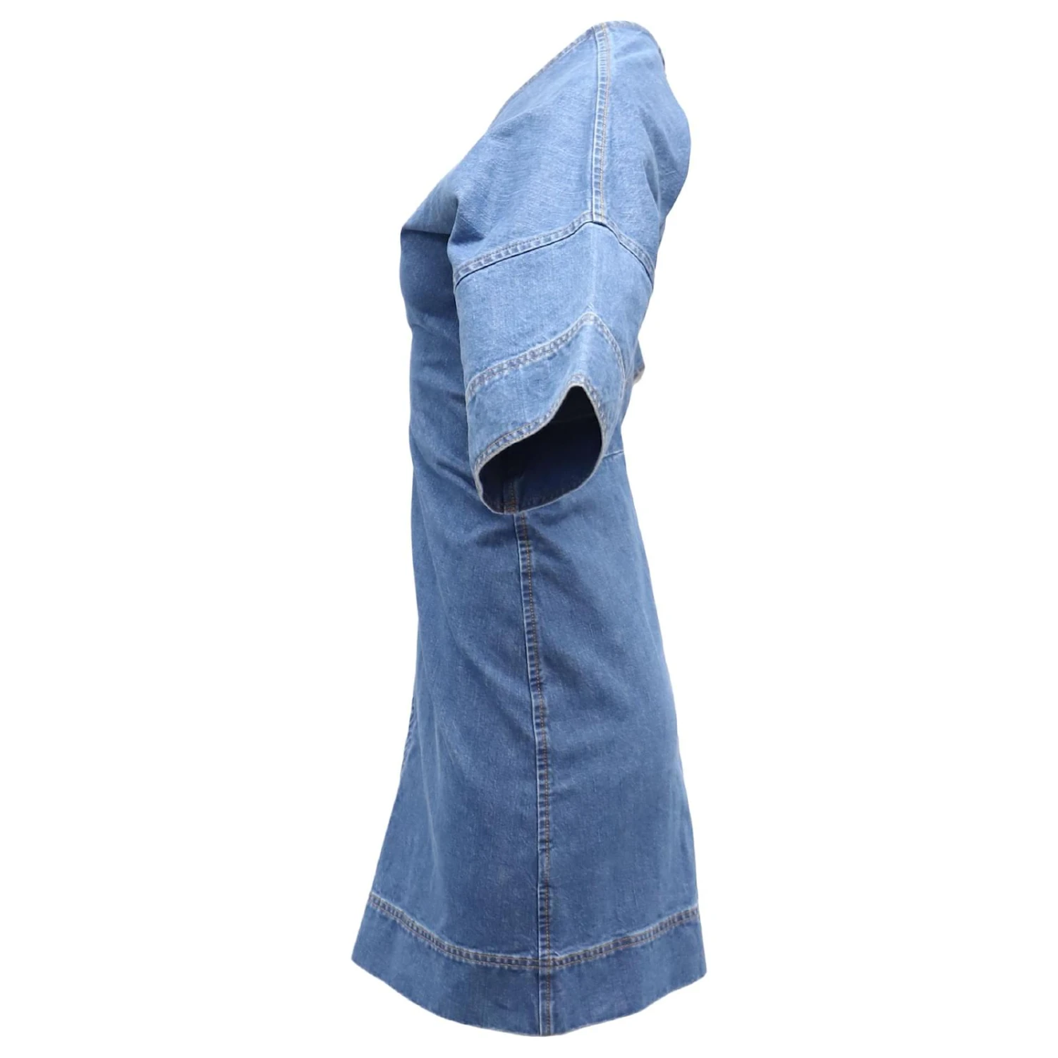 Victoria Beckham T-Shirt-Kleid mit tiefem V aus blauer Baumwolle